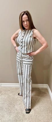 Amazing set! You will feel so pulled together and comfortable in this set. I wore it as a travel outfit (super comfy), on vacation to dinner and to work. Tons of compliments with every wear.