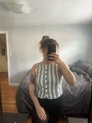 Loved wearing this to a music festival! I love the neckline and it’s a nice thick material. It’s perfect with jeans or shorts. I’d love to buy!