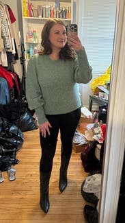 Classic and versatile sweater, warmer than expected which was great. The only reason I gave it 4* instead of 5 is that I didn’t totally love the fabric with the acrylic content. But still fun to wear a couple of times.