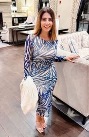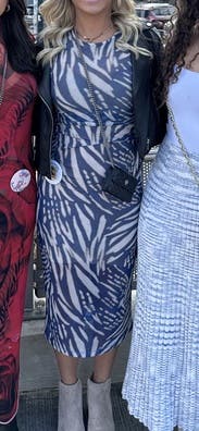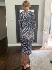 Fit was great. Had I worn shape wear, I think the dress would have been more complimentary to my figure. Unless posed in a very specific way, the pattern x lack of structure x rouching at the stomach wasn’t super than flattering at times.