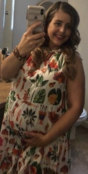 I've received tons of compliments on this dress. I wore it to a backyard co-ed baby shower at 30 weeks and felt so comfortable and cute. Very versatile. A little tight in the shoulders.