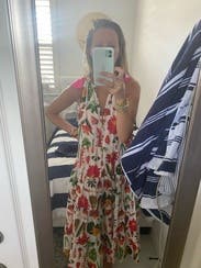 I seriously considered buying this dress. It was super comfortable if not a little booby. I didn’t notice the extra hook in the chest area until I had taken it off, but it did not detract from my love of this dress. Would borrow again for a vacation as it could be a walking around dress or a bathing suit cover up.