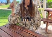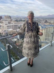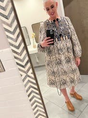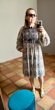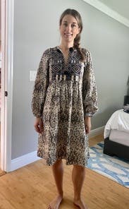 Love this dress. I loved how it flowed in the wind and kept me cool on a warm day. The pattern is vibrant and the fit true to size.
