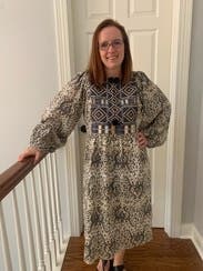 Wore this to a girls Bunco game night and got lots of compliments. The embroidery along the chest really is beautiful and high quality which sets this dress apart. A nice lightweight dress for an early fall evening.