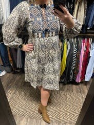 So comfortable and great for working from home. Love the boho style of this dress. Cute little Pom Pom details and can be belted for a different look.