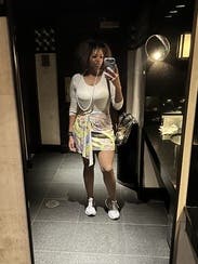 I loved wearing this skirt. I got a lot of compliments and it was perfect for an lsu gameday outfit. It is a tad short if you have a larger booty, but I was fine with it. I’m normally a 26/4 and I got an XS but I could have done the small as well. Very comfortable and easy to wear.