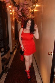 I didn’t end up wearing this because I rented more than I needed for my daughter’s 21st birthday trip to Vegas. The fit was great, easy to get in/out of, not too tight. Would need to wear sticky boobs for me due to the back cutout and my lack of curves. Overall though, this dress was pretty but didn’t give me that “Wow” factor. It was fine but I don’t think I’d go out of my way to rent it again.