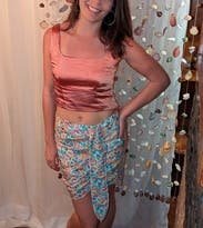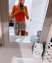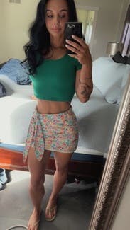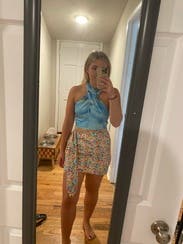 Wore for a bachelorette party. Got this in a medium and the top in a small. I could have probably fit in the small but sized up because I was concerned with the length. I liked the length on the medium