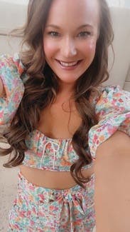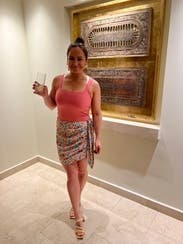I wore this on vacation in Costa Rica! This was my husband's favorite piece I rented for the trip. The skirt is beautiful and feels well made. I love the colors and the details - like the ruching along the back and the double ties. I wore a medium, but really should have gotten a small to better fit my waist.