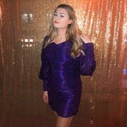 Hot!! It’s a bold look, ok?! But so good. The sequins, mini skirt, and shoulder pads give it “wow!!” but the color tones or down. Soft inside despite sequins outside. Top 5 all time rental!
