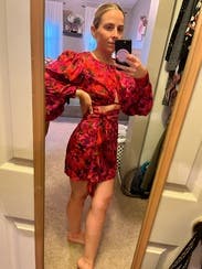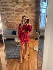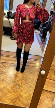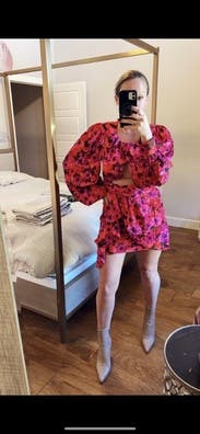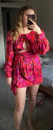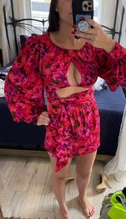 Loved this dress so much I’ll def rent again! The cutout is tasteful and the sleeves are so fun. Got a million compliments! It was slightly short (I’m 5’10) but not unmanageable.