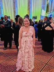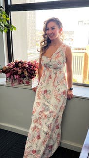 Loved this on. Not as formal as I needed but still very pretty and girly. The fit for me was perfect.