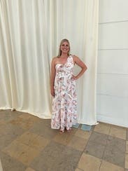 One of my absolute favorites! I felt like a goddess wearing this. No trouble with the strapless side falling down for me, though it sits a little lower than a usual one-strap dress for a hint of sexy.