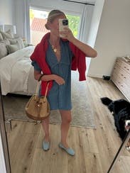 Got 3 wears out of this! Wore on a day date, to the office once, and out to dinner. So fun to style - wore with red jelly flats for a pop of color and lots of jewelry, big sunnies and my Bembien purse.