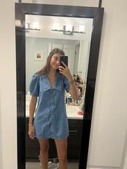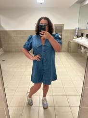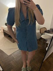 Love this denim dress! Light, comfortable, and so easy to wear. The wide collar gives it a unique touch, and the denim feels soft yet holds its shape.