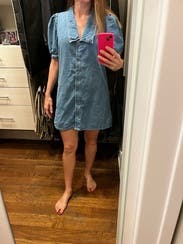 I received so many compliments on this. The collar was so cute and the denim was perfect. The length was great to wear to work or dress it up with sandals/wedges.