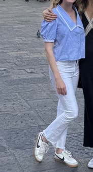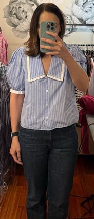 I am living for all of the nautical, yacht club looks this season and this blouse is giving preppy sailor girl. Great quality and TTS