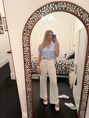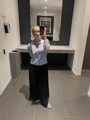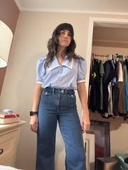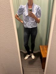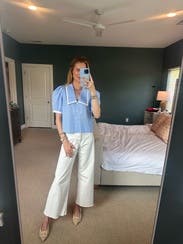 This worked really well for me being petite. It has very nice design details though I struggled to figure out what pants because it’s really cropped