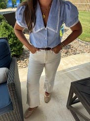 This top was cuter than I anticipated. I tucked it into some slacks for work and it was perfect. It does run a little short (which I like) so beware.