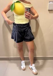 It's true that it is quite ample due to the cut, but I liked this different original version of a short. It's very comfy and can be paired with many things.