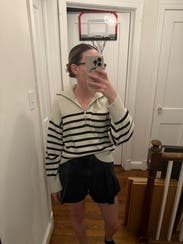 Maybe not the most flattering, but I thought they were fun. I haven’t seen shorts like this before! I kept flattening the pleats because I didn’t I thought they looked kind of silly when they opened up wide. TTS.