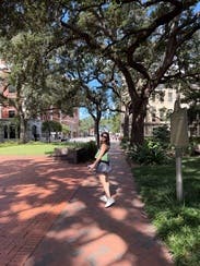 This was the perfect every day, staple bag to bring on vacation - despite its color it matched all of my outfits in the best way, and added a fun pop of color. It is the perfect size and lightweight to carry around!