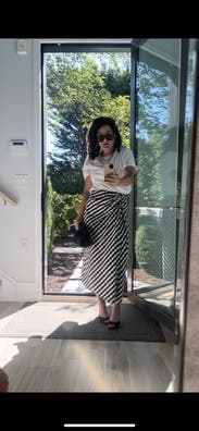 Loved this for going out to dinner on a summer evening. The overscale clutch is beautiful and works well with dressier options because of the color and gold hardware. Will rent again if I’m going on vacation or have an event.