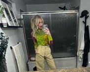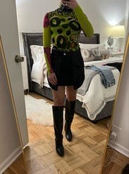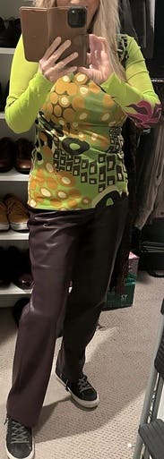 A shirt this chaotic goes with any and everything. So much fun styling this. I also have so much appreciation for a turtleneck opening that doesn’t require the jaws of life to get in and out of.