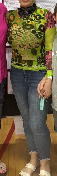 This is not a “shy” look—the colors are hot and the fit is comfortable—I paired it with jeans for a casual daytime vibe.