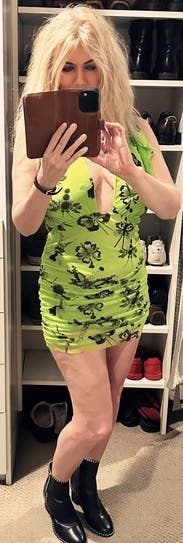 Wore this bright Fuzzi top as a dress for date night at home with my boyfriend.