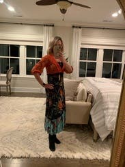 This dress is bump friendly, flowy and breathable! The colors are playful and vibrant and a perfect transition dress for summer/fall.