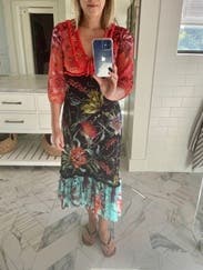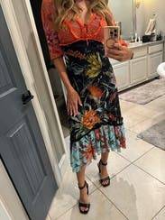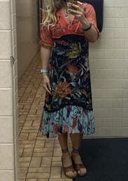 This standout received tons of compliments! The pops of color are undeniable. Comfy and easy to wear. I would definitely rent this again.
