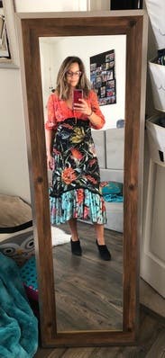 While it definitely stood out with the bold pattern and had a lot of stretch, it wasn't entirely flattering on my frame. Wish I had a couple more inches or wore it for an occasion with heels. The fabric is very comfortable and lightweight.