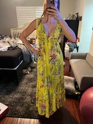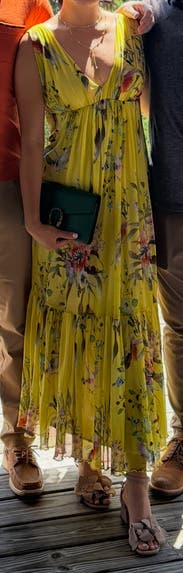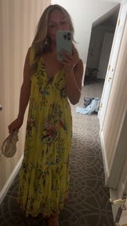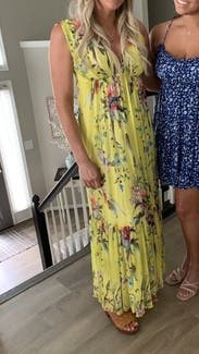 This was one of the most comfortable dresses I have worn. It was gauzy and comfortable for a warm wedding. Flattering and fit perfectly!