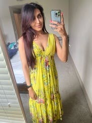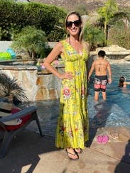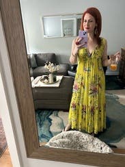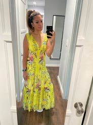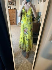 Gorgeous color, easy to wear dress. Wore for baby shower and then several more times at the beach. Super comfortable and can wear a bra. Perfect dress!