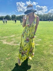 Wore this beauty to Thunder Over Louisville Fireworks Event! I believe I received more than a dozen compliments throughout the event. This dress is both elegant and so comfortably forgiving... I was able to eat, breathe, and stretch. The flowy nature of the material helped me not be a sweaty mess and appear really natural. While the neckline is low cut... it is not revealing w/ shelf inserts. It is a wonderful long dress to fancy up or create a casual look with a jean jacket and sandals.