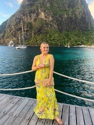 Loved wearing it on vacation at about 26 weeks pregnant. Comfy and pretty dress.