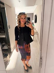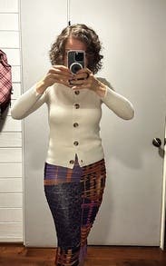 Great length, fit and pattern make for an overall very flattering skirt. Paired it with suggested top.