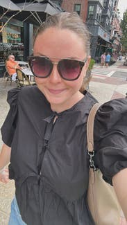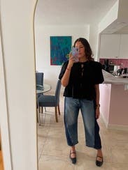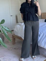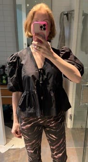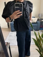 Love that this gives a slightly feminine touch to a “basic” black top. I wear at tank under it for work but have also worn more of a crop top dress it down. Sleeves are a bit balloon-y which I love.