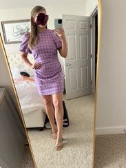 This dress is adorable. A little short so lucked out that it was a chilly northeast day and got away with tights and boots to not show too much leg. (I have a leg complex regardless). The sleeves are adorable and the outfit looks good while being very comfortable at the same time. Highly recommend. (Be prepared to it to slide up an inappropriate amount when seated!)