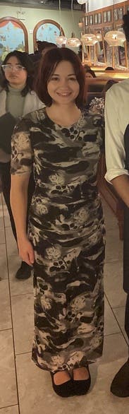I wore this dress to a theater performance. It's form-fitting and comfortable thanks to the stretchy mess fabric.