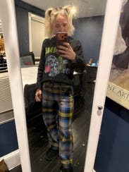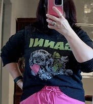 Would I ever buy a $400 sweater with a pastel puppy on it? No. Would I rent it and express my whimsy? Of course. I sized up for an oversized look, but I probably shouldn’t have, because I think it would have looked better fitted. Kind of itchy when I first put it on, but it wasn’t horrible by any means.