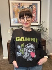 This sweater has a super cute graphic that looks especially great when paired with a little colorful sock and jeans. Be aware that the knit is more fitted, so size up if you want an oversized look. Ganni knits tend be slightly itchy, consider layering a tee shirt underneath if you're sensitive to wool.