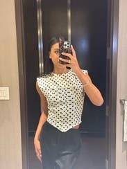 Such a cute top! It fit me perfectly and felt really flattering. I especially loved the shoulder pads—they added structure and a bit of edge without overwhelming my small frame. A great piece that balances style and proportion beautifully.
