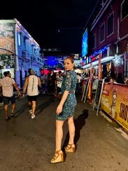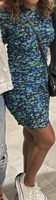 Great little dress for daytime with sneakers or evening with heals. The stretchy fabric is flattering and forgiving.