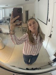 I loved this button up! Perfect for summer office fits because it’s so lightweight. The colors, stripes, and little collar detail are all perfect. Great casual office fit but still elevated