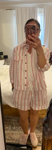 I really appreciate a matching set, the top was great, but the shorts got crinkled very easily.
