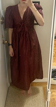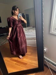 It’s a beautiful dress made of exquisite fabric, that I LOVE. But I felt like it wasn’t doing much for my figure (I would definitely wear it when bloated or pregnant though). Rent if you are obsessed with fabric (I am)