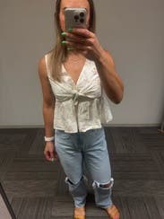 I first put this on and it was so weird — I felt like the tie in front was just so strange and didn’t look right. I tried it on a second time and it looked better. Didn’t love, but was cute overall!