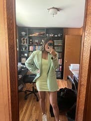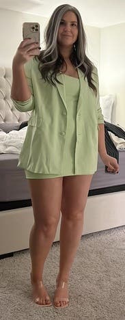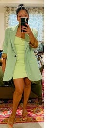 Loved this dress! Comfortable and form fitting. And such a vibe with the blazer. It’s giving office siren